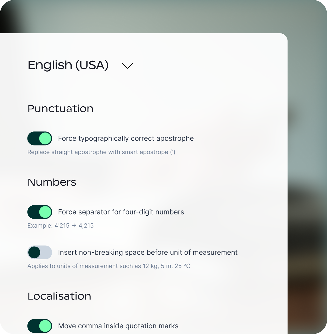 Your terminology, tone and style guides are built into every translation, so outputs remain consistent with your brand across teams and AI assistants.